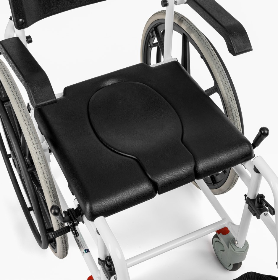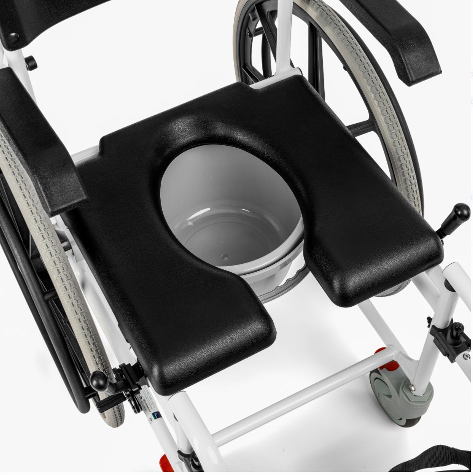 Инвалидната количка с функция тоалетна/душ е помощно устройство за хора, които имат проблеми със самостоятелното придвижване, и за хора с двигателни нарушения и ограничения. Предназначена е за употреба на закрито. Инвалидната количка има функция за душ, транспорт и тоалетна благодарение на наличието на санитарен контейнер под седалката и влагоустойчива алуминиева рамка. Тя е проектирана така, че да улеснява хигиенните и физиологичните дейности на потребителя. Особено се препоръчва за хора с проблеми с придвижването, причинени от: парализа, наднормено тегло, дегенеративни или деформирани крайници, дегенеративни или увредени стави, увреждане или ампутация на крайници, сърдечно-съдови заболявания, нарушения на кръвообращението.