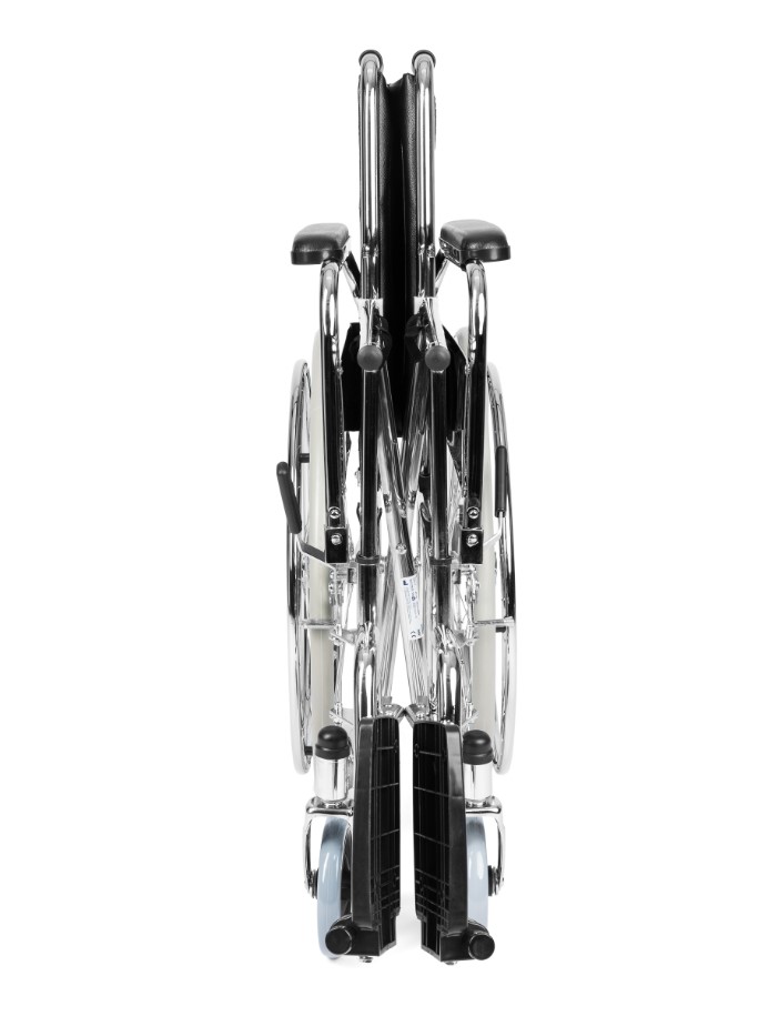 КОМФОРТ ПРИ УПОТРЕБА – Дългите подлакътници и опори за крака с голям наклон и големите гумени колела осигуряват комфорт на пациента и на неговия болногледач.