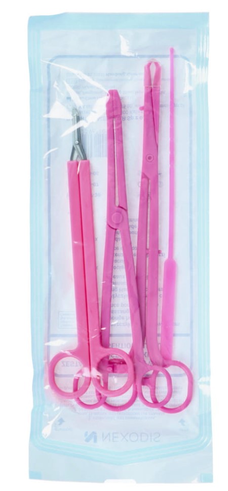 Пълен комплект от всички необходими гинекологични инструменти, необходими за процедурата по поставяне на IUD. Плътно опаковани, готови за употреба по всяко време веднага след отваряне на блистера. Състои се от висококачествени инструменти за еднократна употреба, подсилени със стъклени влакна. Не изисква предварителна подготовка – непокътнатата опаковка гарантира стерилността на съдържанието. Предназначен за поставяне на IUD. Елегантният розов цвят на инструментите се съчетава с дизайнерските цветове на гинекологичните кабинети.