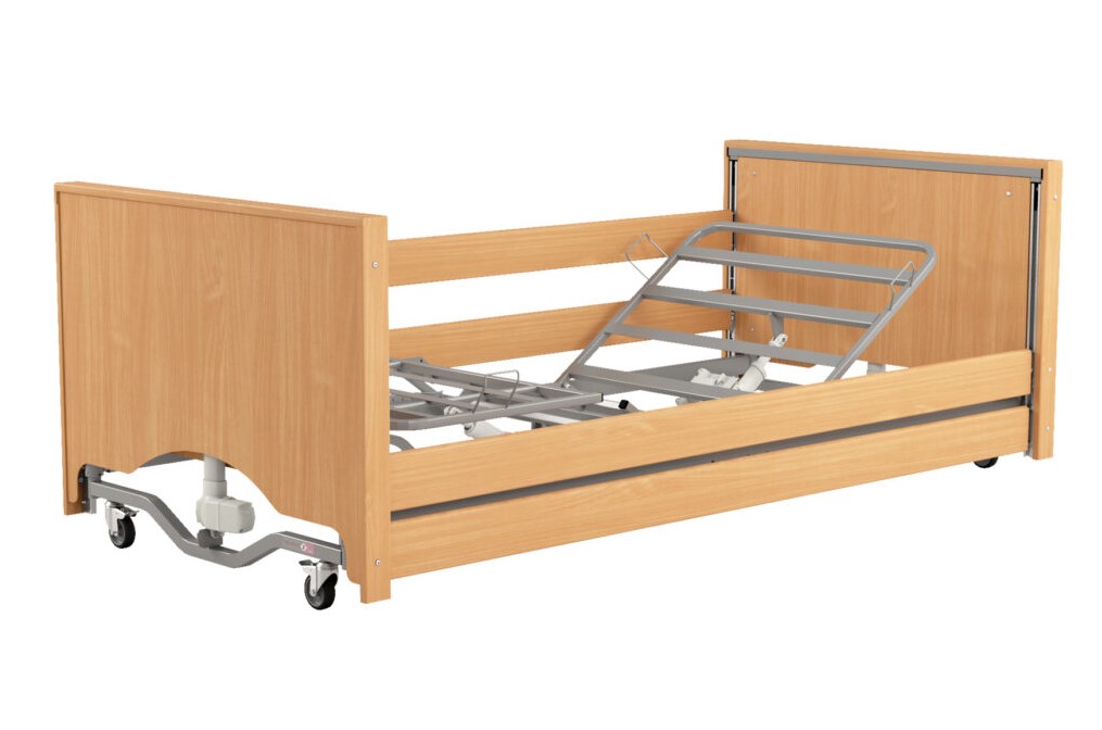 При създаването на модела Taurus 2 LOW LUX използвахме най-добрите характеристики на моделите от серията Taurus и, водени от нуждите на потребителите, въведохме редица промени, засягащи комфорта и функционалността на леглото. Основната разлика е в конструкцията, която при модела Taurus 2 е четириколонна. Това решение позволява по-голяма стабилност на леглото. Освен това, с цел осигуряване на комфорт, позицията на страничните релси е понижена, което значително улеснява ставането и сядането на леглото. Въведените промени са позволили да се намали дължината на леглото – това го прави компактно и подходящо за използване в стаи с ограничено пространство. Освен това рехабилитационното легло Taurus 2 LOW LUX е проектирано така, че да предлага на потребителя възможността да установи най-ниското положение на леглото на височина 20 см и пода. Използването на такова решение в рехабилитационното легло значително улеснява грижите и обгрижването на пациента, но също така улеснява ставането на потребителя. Използвали сме и декоративни плотове.