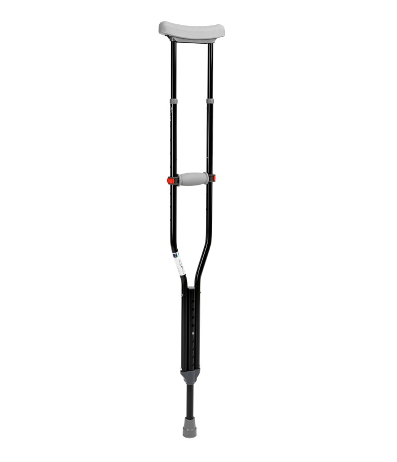 Тя е изработена от здрав алуминиев вал, завършващ с гумена капачка, мека подложка за подмишницата и регулируема дръжка,