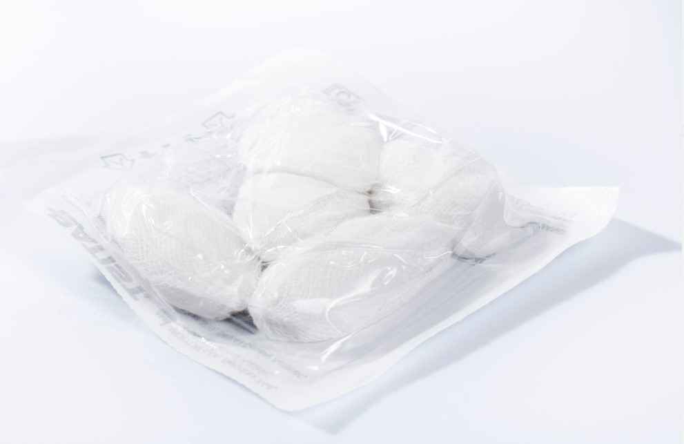 Марля под формата на топчета за почистване на рани. Топчетата са изработени от 100% памучна марля, избелена без хлор.